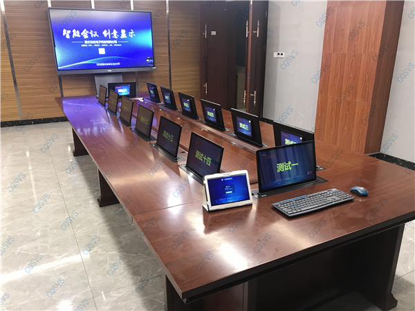 此次重慶迅控電子科技有限公司為某綜保區(qū)打造打造無紙化會議室,會場共設(shè)置14個席位,為每個席位配置了雙屏可觸摸超薄液晶屏升降器SV-LCD17(TD)配合無紙化軟件,實(shí)現(xiàn)眾多會議功能,另外配備海信全場景會議平板顯示設(shè)備、會議擴(kuò)聲及發(fā)言系統(tǒng)、智能中央控制系統(tǒng)等設(shè)備。整體效果獲得現(xiàn)場一致好評。